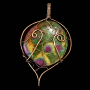 Šperk z drátovaného Rubínu ve fuchsitu, ve tvaru listu. Velikost šperku cca 65/50 mm.